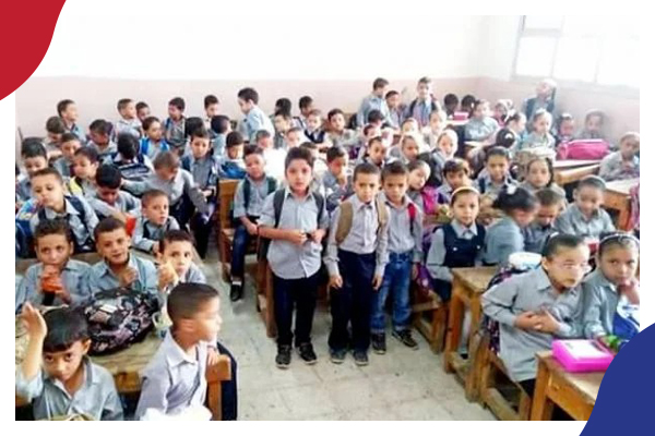ومنذ سنوات عدة ونجد ان صور ومقاطع فيديو تغمر أرجاء منصات التواصل الاجتماعي، ومنها إلى شاشات التلفزيون ومواقع الصحف لفصول مدرسية حكومية ابتدائية تظهر تكدس التلاميذ تكدساً رهيباً  .