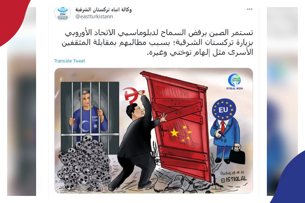 تستمر الصين برفض السماح لدبلوماسيي الاتحاد الأوروبي بزيارة تركستان الشرقية؛ بسبب مطالبهم بمقابلة المثقفين الأسرى مثل إلهام توختي وغيره.