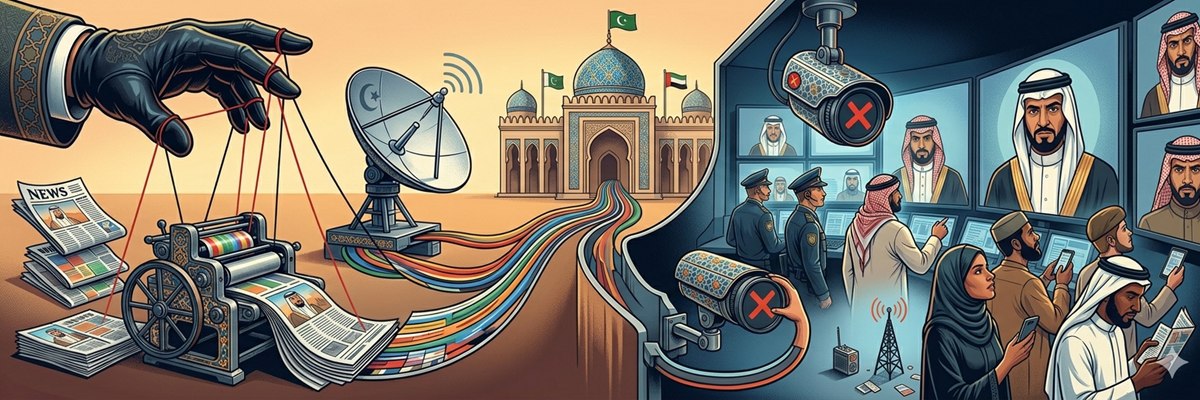 كما لم يؤدِّ النمو الاقتصادي في بعض دول الخليج إلى تحسن موازٍ في مؤشرات حرية الصحافة، حيث لا يزال العمل الإعلامي في عدد من هذه الدول، مثل السعودية وسلطنة عمان والكويت والإمارات العربية المتحدة، خاضعًا لأطر تنظيمية صارمة وضغوط سياسية تؤثر في استقلاليته [13] .