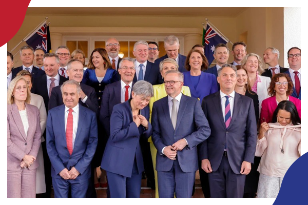وقد اختار رئيس الحكومة أنتوني ألبانيز 23 وزيرا بينهم 10 نساء، مقارنة مع 7 وزيرات في حكومة سلفه سكوت موريسون الليبرالية.