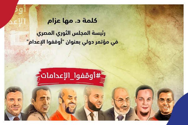 وفي كلمتها، قالت الدكتوره مها عزام، رئيس المجلس الثوري المصري: "الشعب المصري يعيش حاليا في جمهورية الخوف، في قبضة أمنية غير مسبوقة، ويواصل النظام العسكري انتهاك حقوق المصريين بالإخفاء القسري والتعذيب داخل السجون ووجود ما يزيد على 100 ألف معتقل، واستمرار الإعدمات …ورسالتنا اليوم محددة وقصيرة ، لابد أن يحترم حق الحياة حتى في الدول الدكتاتورية مثل مصر، لكن المنظومة العسكرية تستخدم القضاء كوسيلة لانتهاك حقوق المصريين الذين يواجهون الإعدامات والقتل البطئ داخل السجون، والمتوقع الآن إنه في خلال أيام تكون هناك إعدامات جديدة ..وما يحدث الآن شئ من أخطر ما يمكن بخصوص الاستقرار في مصر والمنطقة كلها"